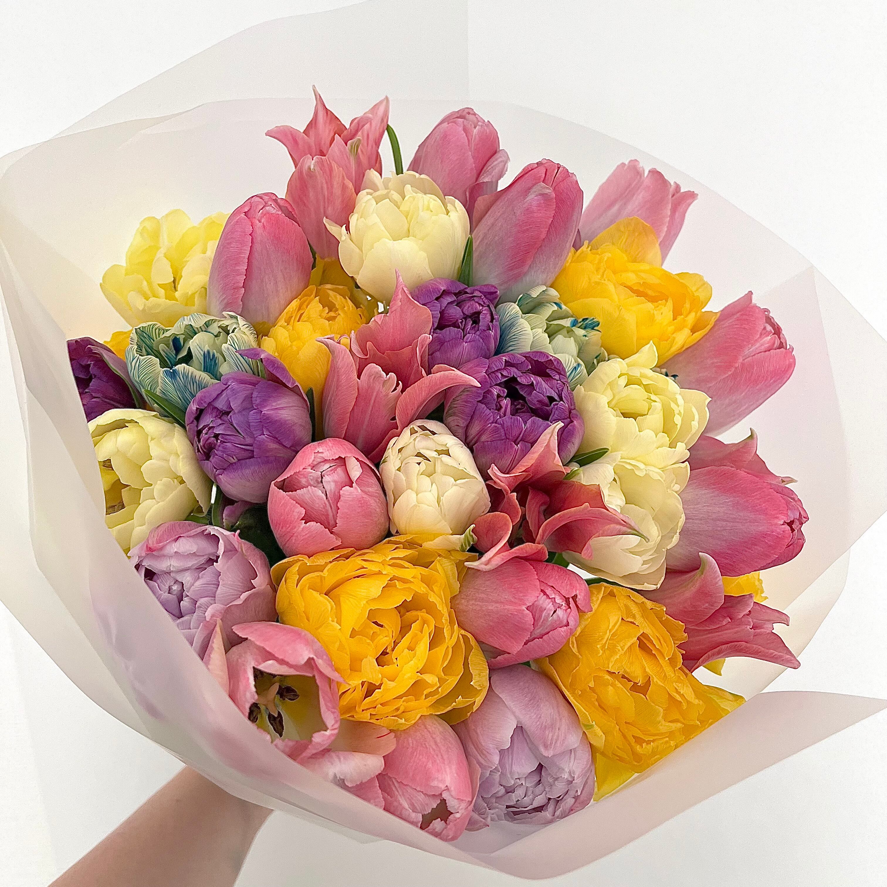 仕入れ状況によりブーケに入るバラの品種は異なります。写真はボリューム感の参考例としてご覧ください。