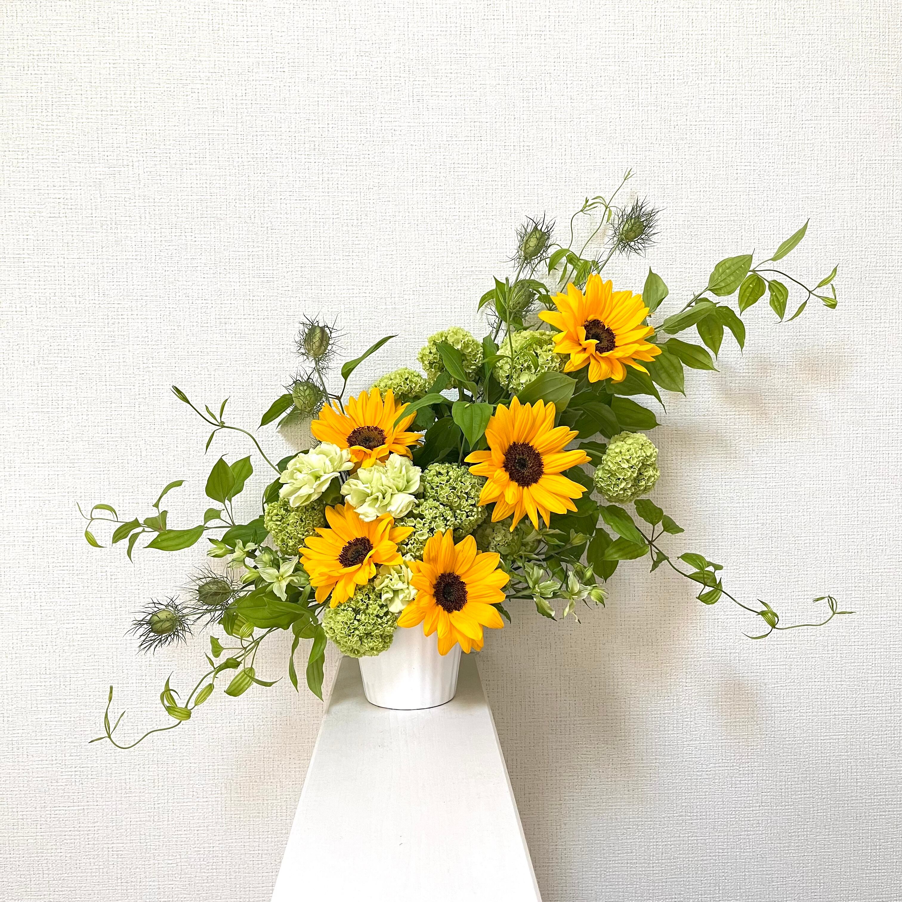 仕入れ状況によりアレンジメントに入るお花は写真と異なります。写真は雰囲気・ボリューム感の参考例としてご覧ください。